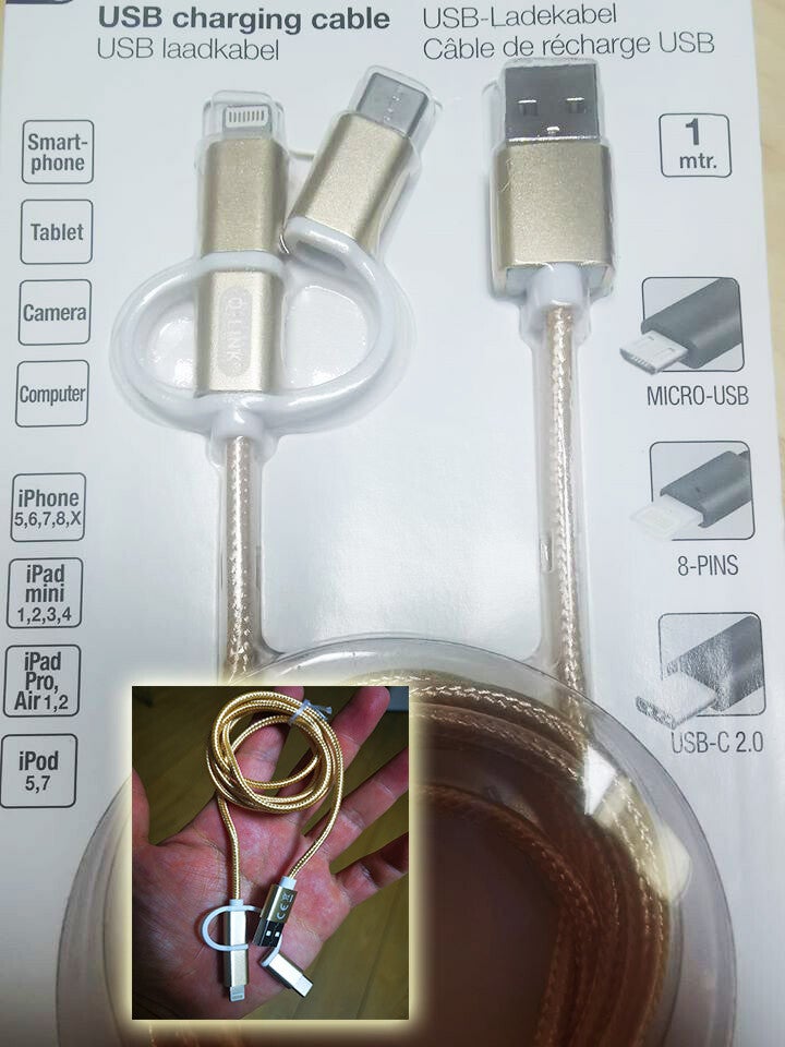 De 3 in 1 kabel is zo handig bij de hand te hebben. Zelf vinden we het veel functioneler dan dure originele kabels die niet al je andere aparaten kunnen opladen.